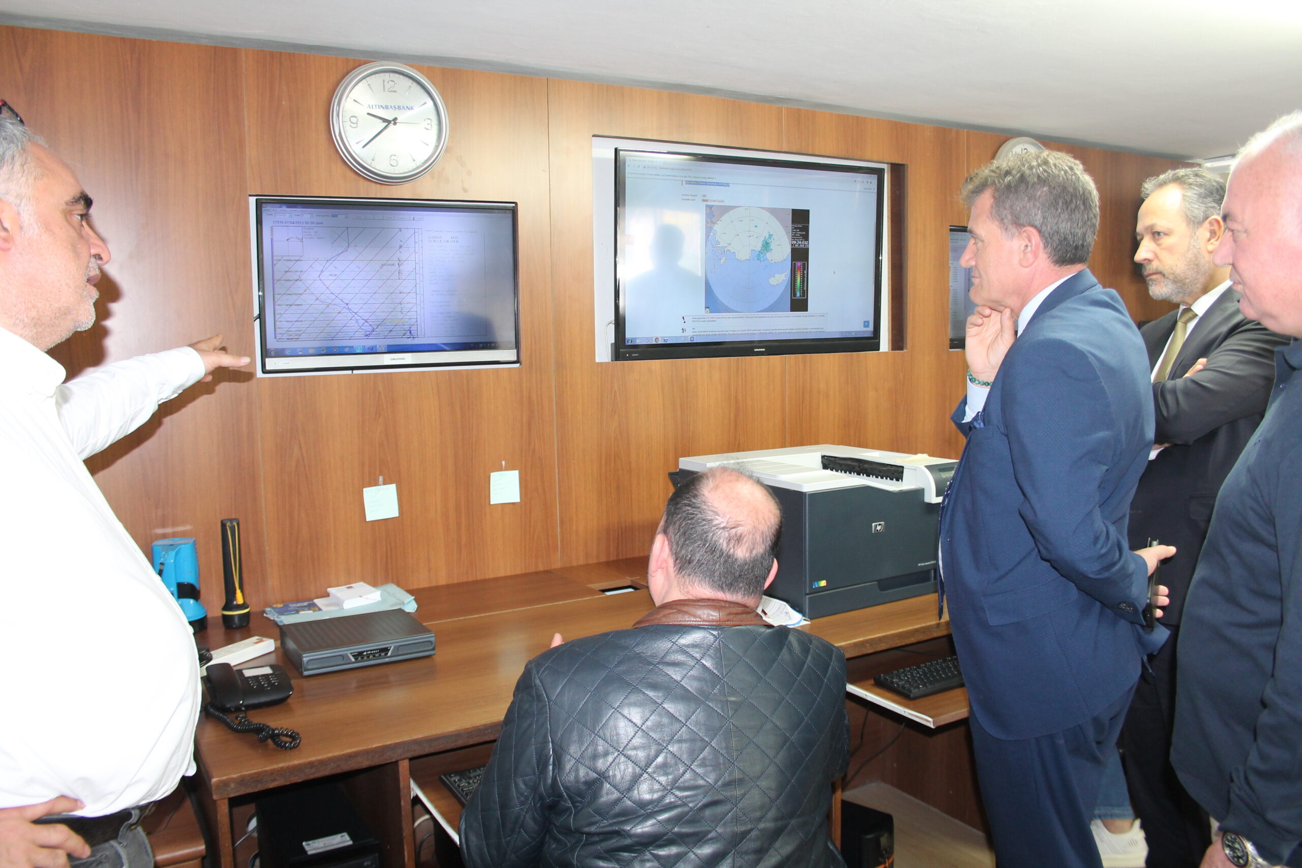 Radiosonde sistemlerinin idamesini gerçekleştiren T.C. Meteoroloji Genel Müdürlüğü ekibi ile birlikte yapılan çalışmaları inceleyen Arıklı, üst atmosfer ölçümlerinde kullanılan teknik cihazlar ve yazılım hakkında bilgi aldı.