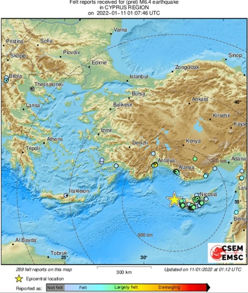 Kıbrıs’ta 6,4 şiddetinde deprem meydana geldi.