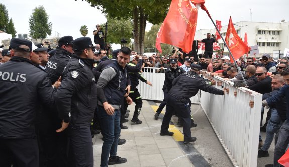 EL-SEN’in önceki gün Meclis önünde gerçekleştirdiği eylem sırasında sökülen Meclisin ön kapısıyla ilgili 7 sendika üyesi polis tarafından ifade vermeye çağrıldı Kıbrıs Türk Elektrik Kurumu Çalışanları...