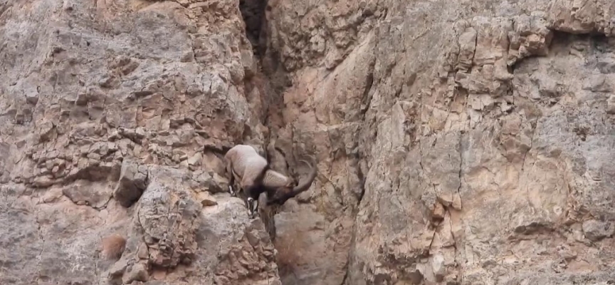 Gümüşhane'de kayaların usta tırmanıcıları olan yaban keçilerinin sarp kayalıklardaki hünerleri kameralara yansıdı.