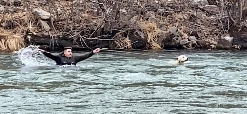 Tunceli'de bir köpek, tasmasının taşa takılması sonucu su kıyısında mahsur kaldı. Köpeği kurtarmak için soğuğa rağmen kıyafetleriyle suya atlayan Gürkan Yılmaz, takdir topla...