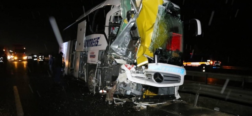 Yolcu otobüsü arızalanan kamyona çarptı: 3 yaralı
