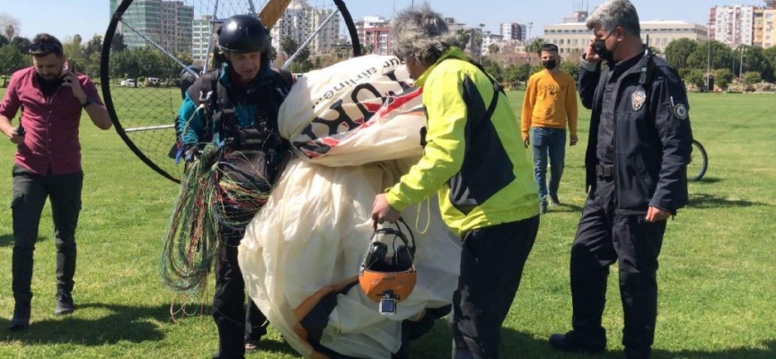 Adana'da izinsiz havalanan 2 paramotor, polisin devreye girmesiyle indirildi.