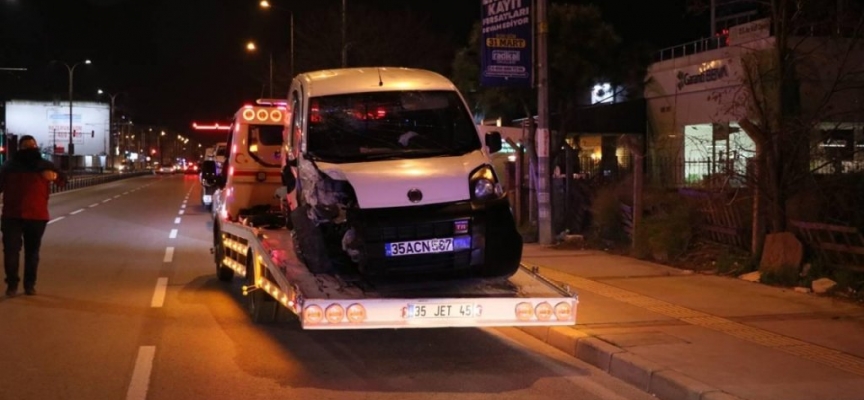 İzmir'in Karşıyaka ilçesinde hafif ticari aracın park halindeki 2 otomobile çarpıp kaldırıma çıkması sonucu 1'i polis 3 kişi yaralandı.