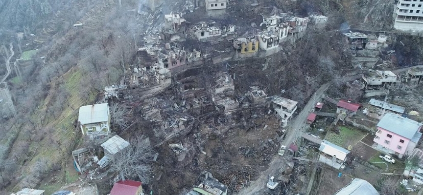 Artvin’in Yusufeli ilçesi Dereiçi köyünde, 35 bina ve 60 hanenin zarar gördüğü yangının boyutu gün ağarınca ortaya çıktı. Terk ettikleri evlerine geri dönen vatandaşlar, ger...