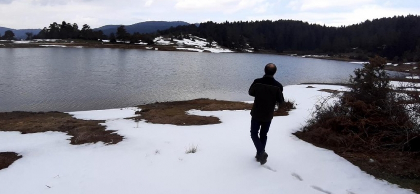 Sakarya'nın Taraklı ilçesi Karagöl Yaylası'nda, kış ve ilkbahar bir arada yaşanıyor.
