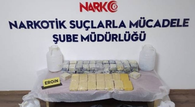 Malatya'da, kent girişindeki uygulama noktasında durdurulan yolcu minibüsünde peynir bidonlarına gizlenmiş 31 kilo 268 gram eroin ele geçirildi.