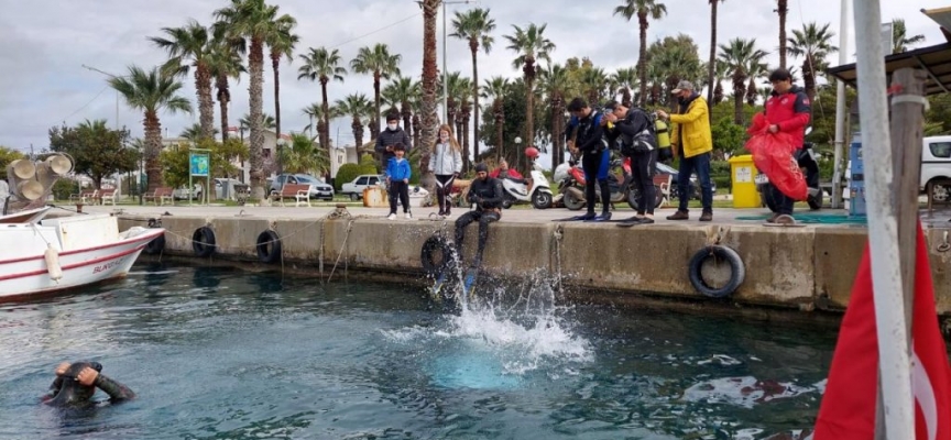 Muğla'nın Bodrum ve Datça ilçesinde dalgıçlarla deniz dibi temizliği yapıldı. Deniz yarım tona yakın atıktan temizlendi.