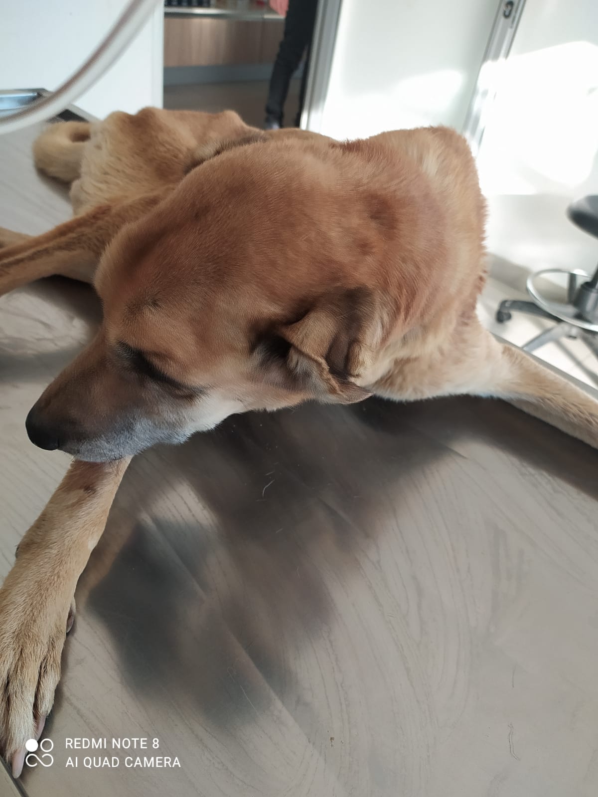Gönyeli’de ayakta durmaya ve yemek yemeğe dahi takati olmayan bir köpek, dün duyarlı ve vicdanlı bir vatandaş tarafından sosyal medyaya yansıtıldı.