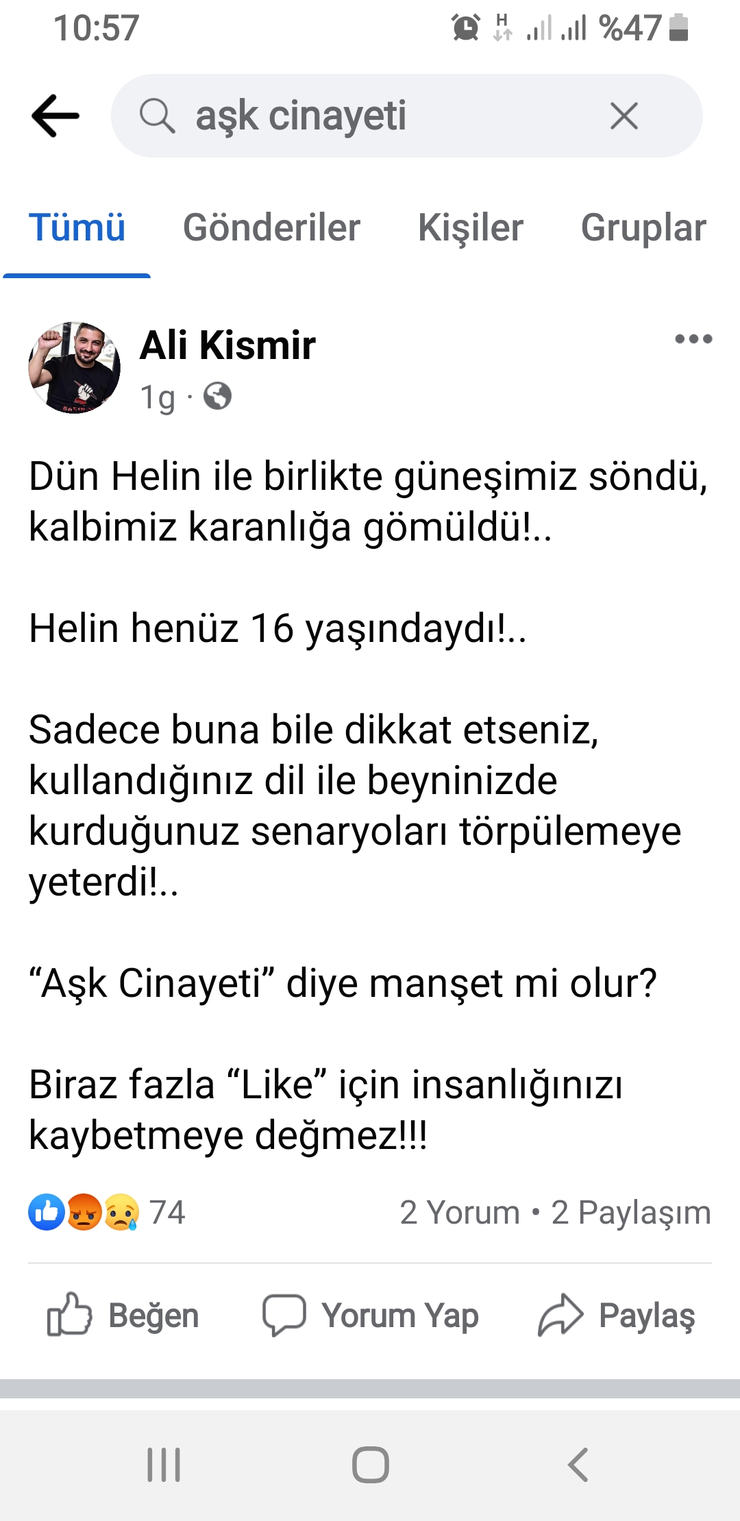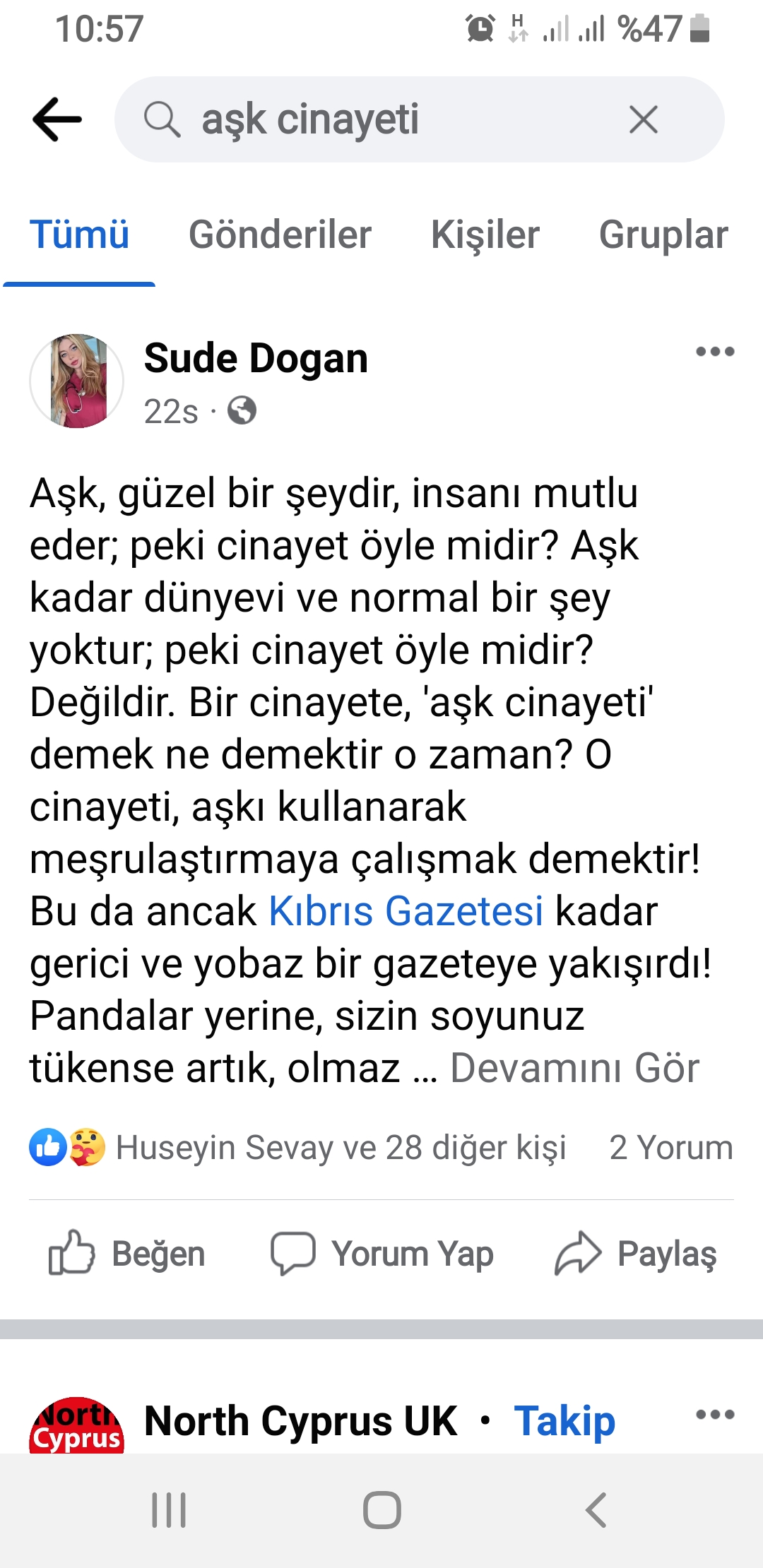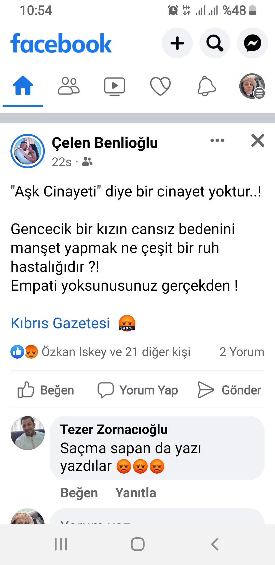 Milletvekillerinden tutun da siyasi parti ve sivil toplum örgütlerinin kınadığı 16 yaşındayken bir erkek tarafından öldürülen Helin Reessur cinayetiyle ilgili “Aşk Cinayeti” manşeti atan Özer Kanlı‘nın Genel Yayın Yönetmenliğindeki Kıbrıs Gazetesi‘ne vatandaşlardan da ciddi bir tepki geldi.