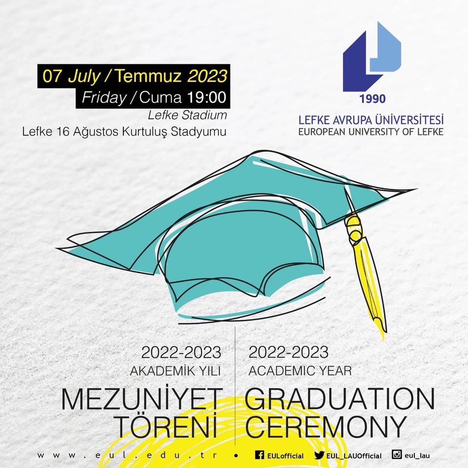 Lefke Avrupa Üniversitesi (LAÜ) 30’uncu dönem mezunlarını vermeye hazırlanıyor. Mezun öğrencilerin diplomalarını alacağı tören, 7 Temmuz 2023 tarihinde saat 19:00’da Lefke 16 Ağustos Kurtuluş Stadyumu’nda gerçekleştirilecek.
